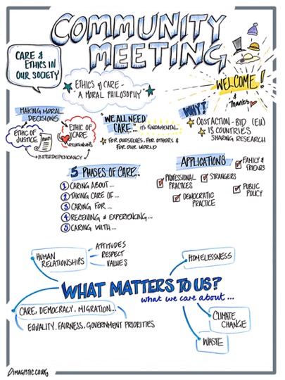 At Bournemouth University on 25th April, a community meeting was arranged to bring together people to talk about what they care about. The purpose of the meeting was to contribute to a European network application for funding to the COST Action stream. That application is a partnership between members of CERC: BU Dr Tula Brannelly, and Professor Carlo Leget at Utrecht and Professor Petr Urban in Prague. Bournemouth University Pump Prime funding supported this community meeting. The application is based around renewing how major societal challenges are framed by using a different way of seeing and thinking about them with care. read more
